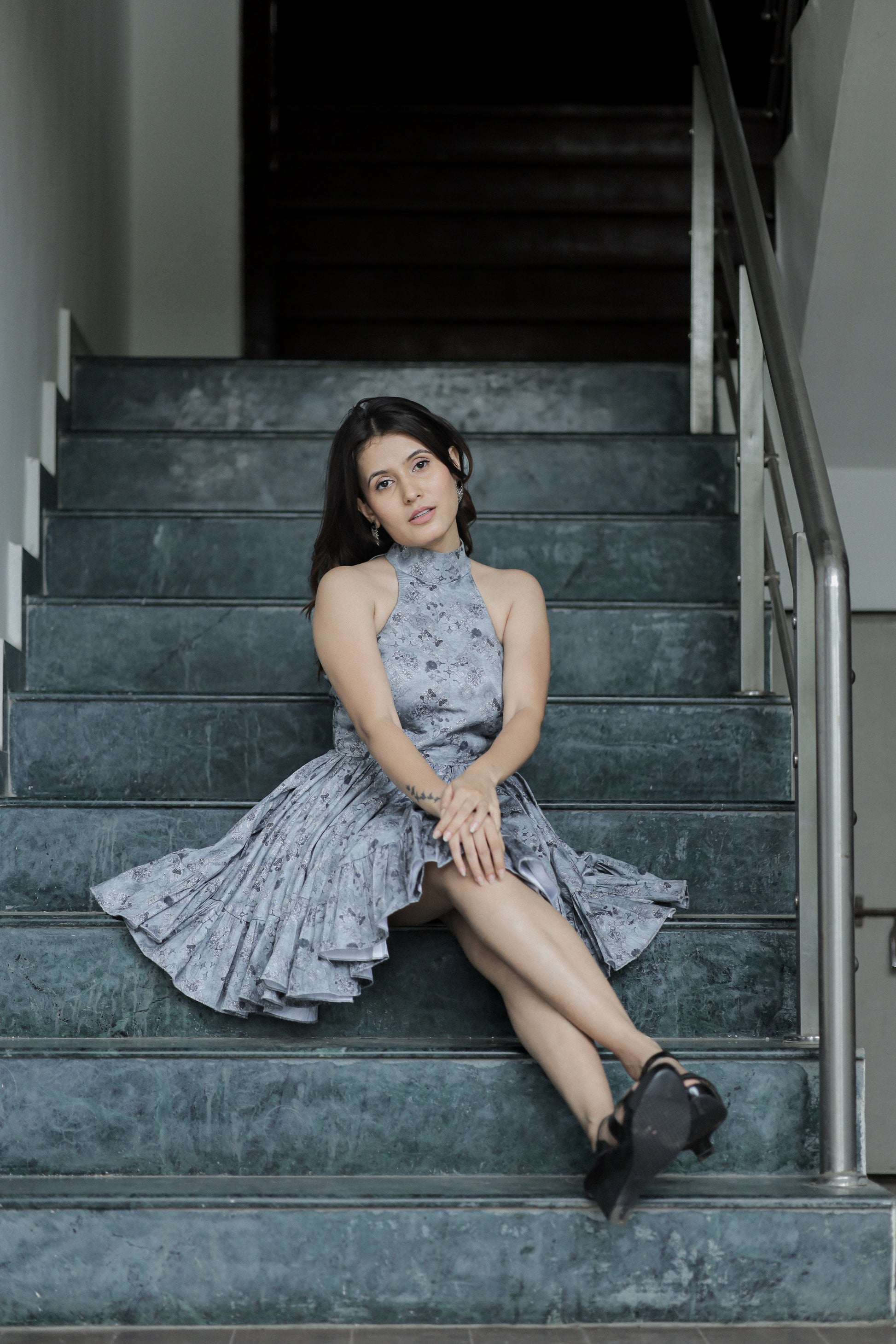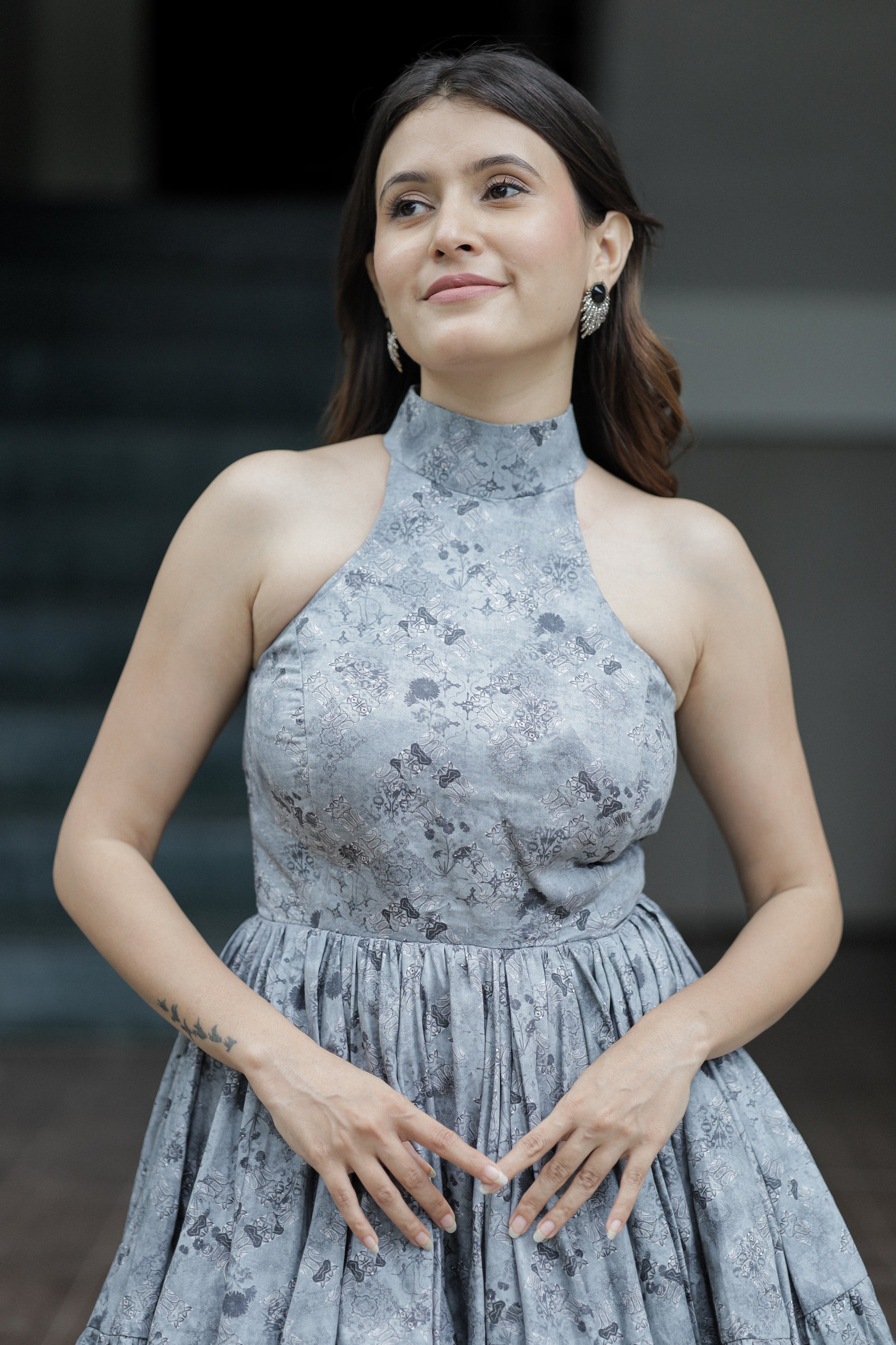 Elegance in every detail. Discover the effortless charm of this ash halter-neck frock